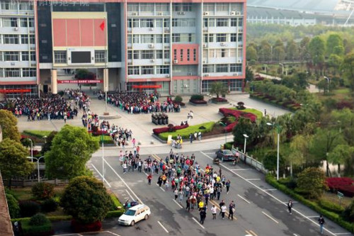 清晨6:40,升旗仪式结束后,校长皮修平、副校长聂东明率先精神抖擞地跑出国旗广场,带领着师生开始了环校一周的晨跑。从国旗广场沿着正德路,经过数学楼、计算机楼,跑上西环线,最后返回国旗广场。一路上,全体师生迈着矫健的步伐,队伍整齐而统一,奔跑的队伍围绕着校园,形成了一道亮丽的风景线。校园里洋溢着朝气蓬勃的气息。