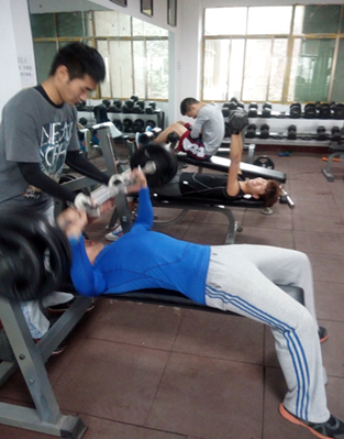 周一周二周四周五早晨进行晨跑,每天早上6:00起床,每天绕学校跑两圈,但是晨跑并不能满足他们的丰富生活,每周的篮球赛是他们必不可少的课余活动,周三休息,周六周日下午大集体篮球赛。另外,他们每周都会去健身房锻炼身体,专业的教练和器械,帮助了他们更加科学和专业地锻炼。宿舍还就经常购买运动器材,现有仰卧起坐板、哑铃、瑜伽垫、健腹轮、俯卧撑架、篮球三个,晚间时候四个人就会在寝室一起进行体育锻炼。通过这两年来的坚持,身体素质得到了明显的改善,在运动竞赛中取得了可喜的成绩。