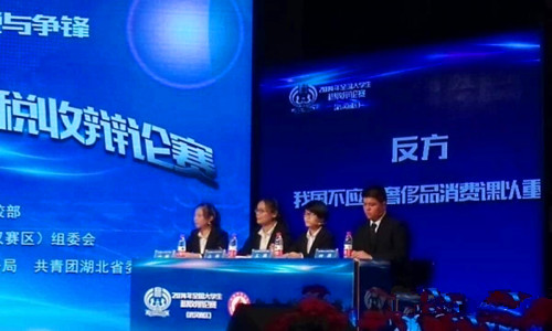10月29日,我院赴武汉大学参加2014年全国首届大学生税收辩论赛的选手们传来佳绩。 在今天下午举行的2014年全国首届大学生税收辩论赛中,我院学子与国际大中专辩论冠军----武汉大学辩论队展开了激烈的辩论。 最终,我院选手成功战胜武汉大学辩论队,晋级1/4决赛。