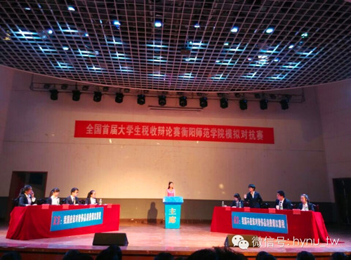 10月20日上午,全国首届大学生税收辩论赛衡阳师范学院模拟对抗赛在我院东校区音乐厅举行。湖南省国税局,衡阳市国税局、衡阳市地税局相关人员以及学院相关领导观看了此次辩论赛。