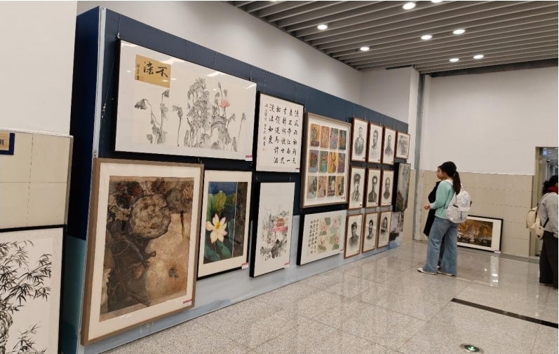本次展览是学校廉洁文化宣传月系列活动之一,整合三笔字大赛与大学生绘画大赛优秀成果,涵盖软笔、硬笔、粉笔字书法及油画、水墨画等多种艺术形式,创新融入廉洁主题剪纸与创意视频,并深度挖掘红色校史中的廉洁人物事迹,实现传统廉洁文化与校史精神的有机融合。展览现场,主题鲜明的作品吸引师生驻足,软笔书法作品“粉骨碎身浑不怕,要留清白在人间”笔力遒劲,将《石灰吟》的廉洁气节跃然纸上;水墨画作《清风荷韵》以象征手法诠释洁身自好的品格;校史廉洁人物专题展更让大家在榜样事迹中感受廉洁力量。