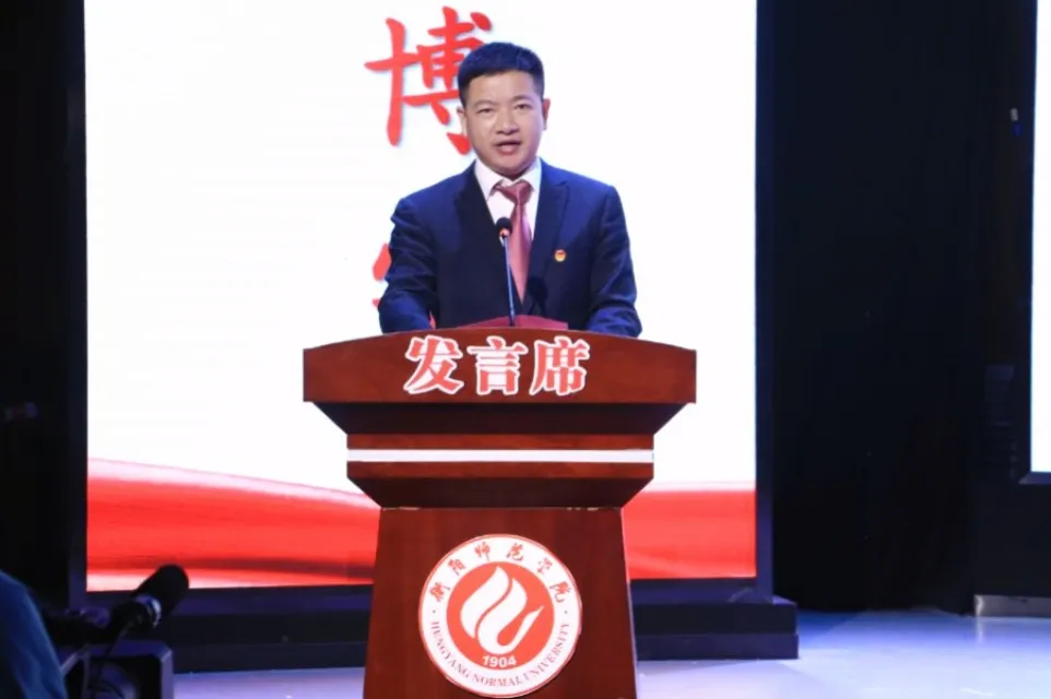 颁奖环节结束后,副校长魏晓林代表学校党委、行政向广大青年致以节日的问候和美好的祝愿,向受表彰的先进集体和个人表示祝贺。并对广大衡师青年提出了几点希望,要传承五四精神,坚定理想信念。衡师青年要坚信中国道路,坚守价值追求,坚定文化自信;要勤于学习实践,练就过硬本领。要增强学习的紧迫感,坚持学以致用;要砥砺奋进前行,勇担时代重任。在青春的赛道上勤勉耕耘,勇挑重担、勇克难关。