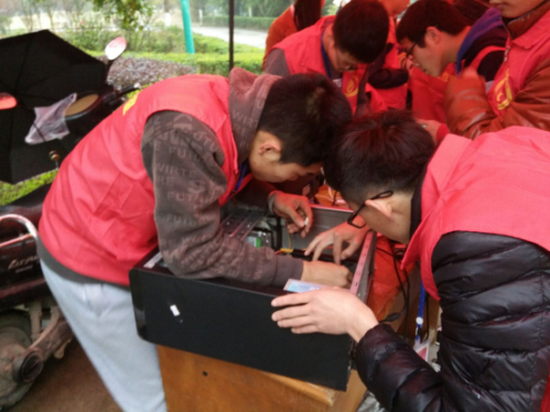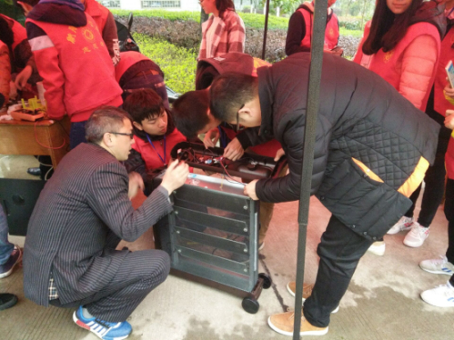 活动伊始,张书记、李老师和雷电成员提前在社区搭好了工作棚,并为更好的志愿服务做了一系列的准备。张书记强调:“一定要弄清楚原因再动手,尽量拆一件就要修好一件,实在修不好也要将其重新组装好。总之,一定要对需要维修的电器负责到底。”不久后,志愿服务活动就在淅淅沥沥的春雨中拉开了序幕,张书记和李老师也亲自加入到此次维修活动中来,需要维修家电的人纷纷闻讯赶来,络绎不绝。天气微凉,可这丝毫没有减少志愿者们为社区人民服务的热情。他们热心的带领需要维修家电的人员到服务台填写了该家电的名称、大致出现的问题并且留下了联系方式。随后,志愿者们就将需要维修的电器编码贴上标签,在明确了电器故障的原因后再运用专业知识以及生活经验拆除、修理、组装电器,在修好电器后立马打电话通知电器主人来领取。在一声声道谢中各志愿者们热情高涨,同时对接下来的工作更加充满信心。全校师生也纷纷表示对此次志愿服务工作的赞赏和支持,将此次活动推向高潮。整个活动现场充满了真情与青春的气息。最后,此次活动在雷锋家电维修公司修好47件电器下,伴着夕阳缓缓落下了帷幕。