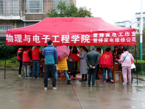 “文明创建我先行,雷锋家电进社区”,3月5日,为了响应衡阳师范学院团总支学生会及青年志愿者服务联盟开展的文明创建“雷锋月”志愿服务活动,物理与电子工程学院雷锋家电维修公司在我校师苑新村门口开展雷锋家电进社区活动。物理与电子工程学院党总支副书记张先学、辅导员李林奇出席本次活动,并与雷锋家电工作室成员积极参与此次义务维修活动。