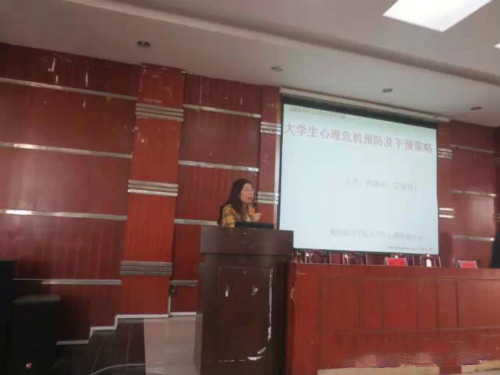 蒋主任以一段精彩的自我介绍作为开场,紧接着点明讲座主题——大学生心理危机预防及干预策略,接下来她围绕该主题进行了深入分析。