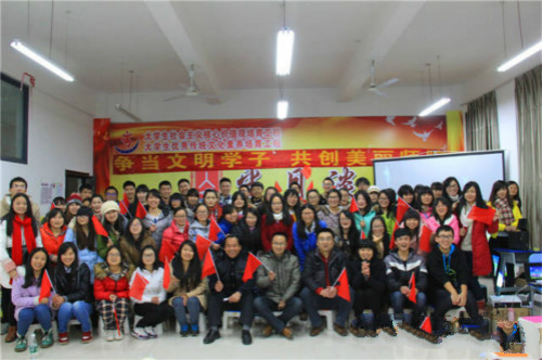 本次活动由人文系主办,人文与时政教育工作室和学院示范班级2012级历史一班联合承办。人文系2012级历史一班作为学院重点建设的示范班级,前期通过清扫文综楼、开展四点半课堂以及向全体学生发放“文明师院倡议书”和签名活动,用自己的实际行动,践行美丽师院和示范班级的建设。