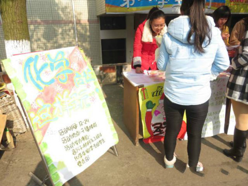 12月24日,化材系高分子材料与工程专业及化学生物学第三学生党支部借圣诞节的契机,在千禧楼前开展了以“化学应该这样玩”为主题的专业特色活动。
