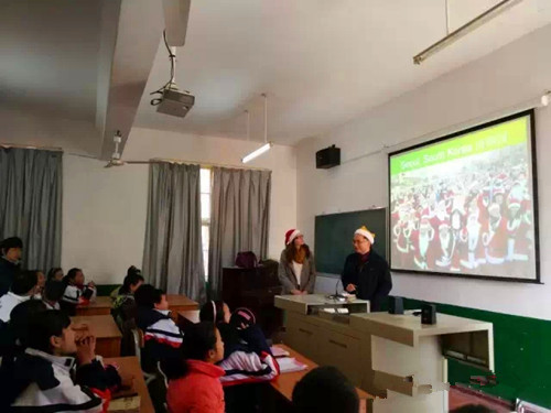 授课活动在酃湖中学教师代表讲话中拉开帷幕。上课之前,两位外教老师分别用英文向学生们做了自我介绍,并围绕圣诞节这个主题展开了一节丰富多彩的课堂。因为圣诞节即将来临,两位老师主要向学生们介绍了外国圣诞节的隆重盛大的场面及其风俗习惯,并在课堂上教学生们用英文唱圣诞歌,给同学们发放糖果,生动有趣的讲课方式点燃了整个课堂的气氛,激起了学生们对即将到来的圣诞节的无比憧憬。