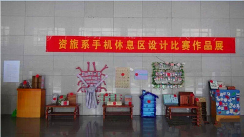 12月15日上午,资旅系在理科楼大厅举行“让手机休息,创文明课堂”手机休息区设计大赛作品展览。