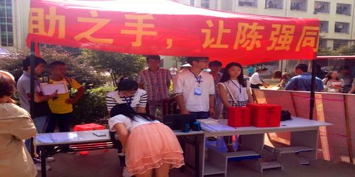 看着一个本应蓬勃却日趋凋零的生命无助地向我们呼喊,那勇敢而坚定的求生意志无不震撼着我们每个人的心!于是,从10月20日起,一条条写有“伸出援助之手,让陈强同学重见生命之光”的红幅在校园中飘扬,点缀着深秋的师院,让这个秋日显得越发温暖。