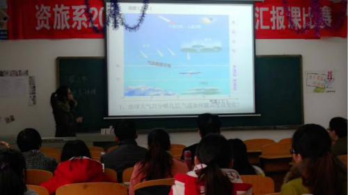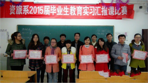 12月7日上午,我院资旅系于理科楼举办2015届毕业生教育实习汇报课比赛。系主任王鹏、副主任邹君、田亚平教授等担任此次比赛的评委。