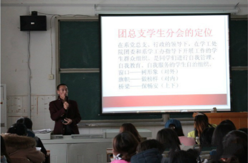 周新文书记首先介绍了新闻系团学分会的主要定位和机构设置。他说,团学分会对外是树立新闻系良好形象的窗口,对内是为系学生做榜样的旗帜,在领导与学生之间是保畅安的桥梁。周书记反复强调了学生干部应具备的素质。他说,学生干部最基本的素质是政治素质,应该具有政治觉悟、政治品德和政治理论水平,要加强思想政治修养,要有饱满的政治热情和明辨是非的能力。此外,还需要具备知识素质、心理素质、责任意识和大局意识等等。在介绍工作方法和经验时,周书记用“医保能告诉我们什么“、”迎新晚会的思考“等案例给予学员们生动易懂的思考,为以后的工作提供了借鉴。