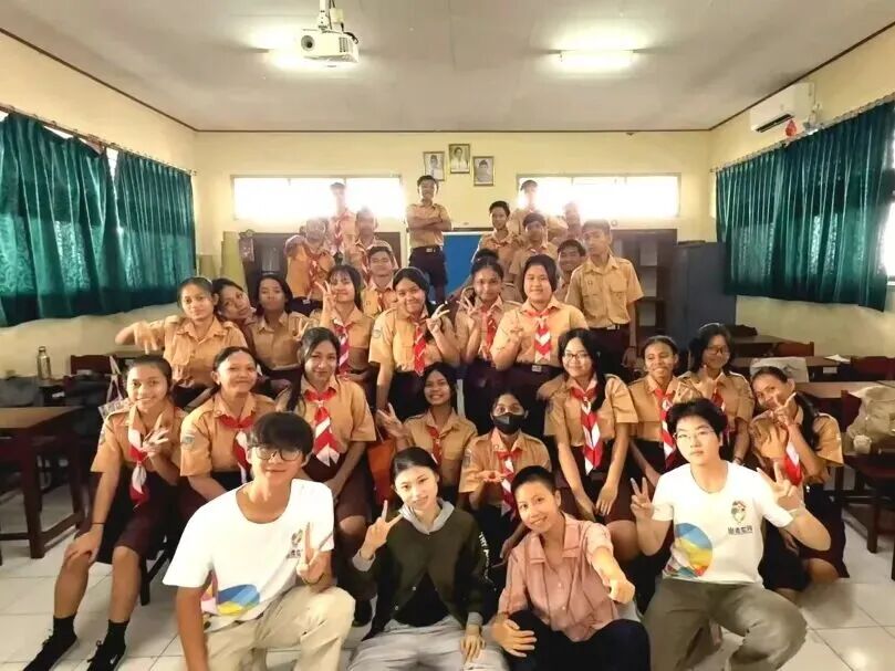 “‘教育不是注满一桶水而是点燃一团火’,这火,是文明互鉴之光,是理论照进现实时,那道最美的彩虹。”当中华文化搭起心灵桥梁,除了“老师”,龚烨还是他们亲切的“中国朋友”。课间时分,她的身边总是围满“小好奇”:“老师,‘你好’怎么说?”“龚烨姐姐,中国的小朋友会害怕考试吗?”她用不太流利的印尼语夹杂英语,耐心回答每一个天真可爱的问题,笑声成为最通用的国际语言。孩子们向她推荐传统的巴厘岛美食,她则和大家分享来自湖南的“臭豆腐”“糖油粑粑”……这平凡的“人间烟火气”,恰恰成为了最自然的文化交流互动。