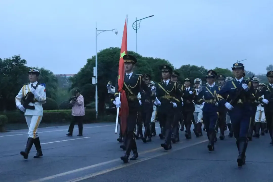 随着国旗护卫队指挥员的指令下达,护旗手迈着铿锵正步,肩托五星红旗稳步走向旗杆,每一步都踏响了守护信仰的节拍,每一寸位移都彰显着对国旗的崇高敬意。
