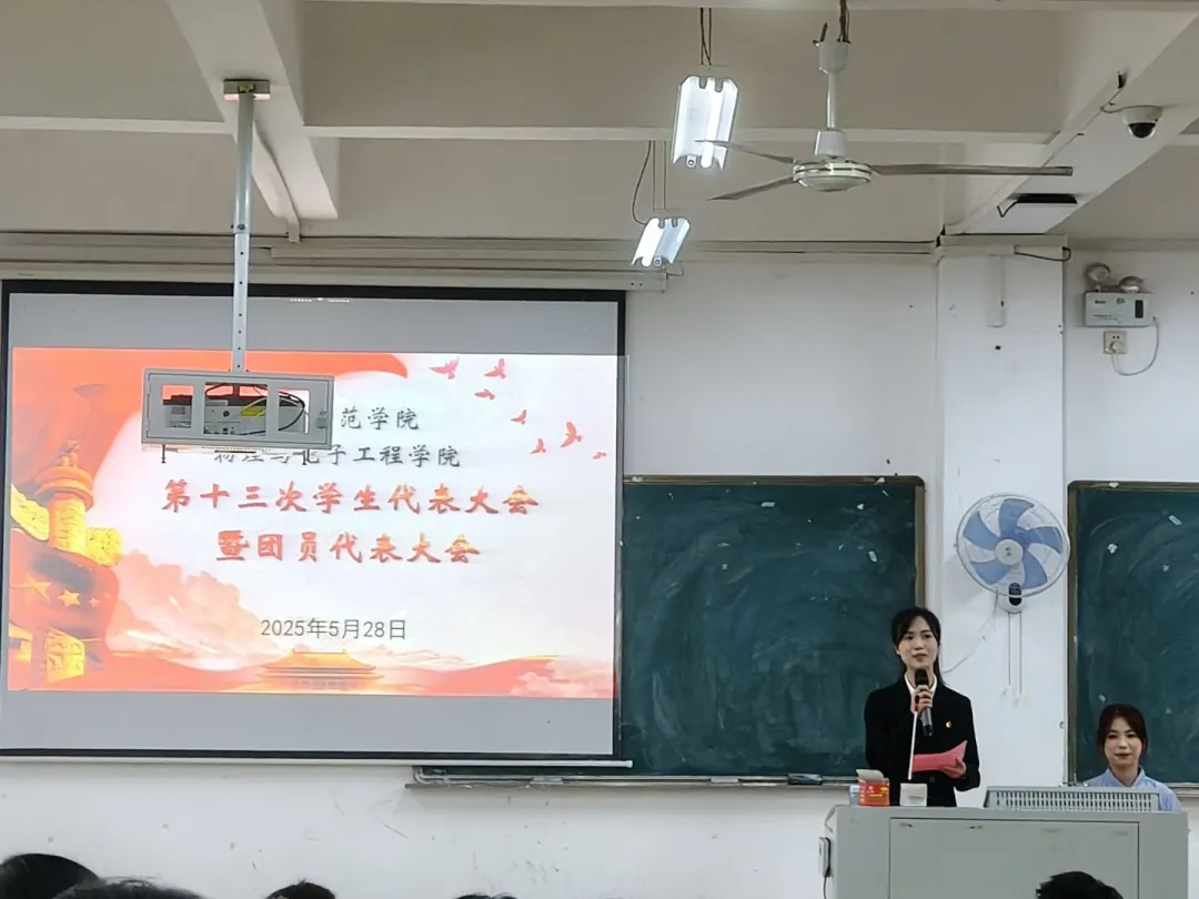 随后,大会选举产生了物理与电子工程学院学生代表大会常任代表名单并开始全体学生代表的公开投票。场下人员计票的同时,执行主席冯俊杰作《物理电子工程学院分团委工作汇报》,汇报全面回顾了过去一年分团委学生会的工作,涵盖思想引领、学风建设、校园文化活动、社会实践及组织自身建设等方面,既总结了在引导青年学生坚定理想信念、助力学风提升、丰富校园生活、推动实践育人等领域取得的成效,也客观分析了工作中存在的不足,并对未来一段时期的工作方向进行了阐述,为后续学生工作的开展明确了思路。