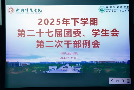 地理与旅游学院于2025年11月4日在星瀚楼南101室召开第二十七届团委、学生会第二次干部例会。地理与旅游学院学工办主任兼团委书记阳宏润以及第二十七届全体学生干部共同参加本次会议。