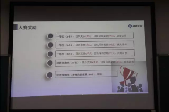 在介绍嘉宾和领导致辞后。粤嵌的负责人对整个大赛进行了深度解析,以及在今后参赛后会进行培训和大赛的奖项设置进行了介绍,并对众创空间做了宣传。