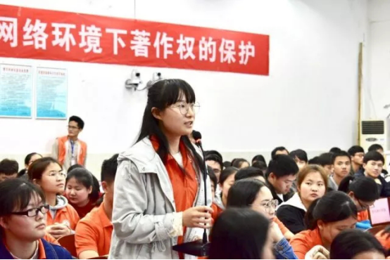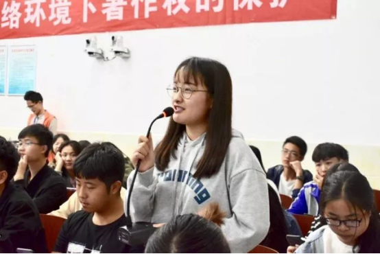 在观众互动环节中,同学们积极主动的发言,现场气氛热烈,掌握了本场论坛的话语权。部分同学结合自己生活中遭遇的侵权行为并向三位嘉宾提问。三位嘉宾耐心解答,循循善诱,深层次且多角度让同学们树立正确的价值观,提高法律保护意识。最后,有奖竞答环节将论坛氛围推向高潮,竞答主要围绕“著作权”相关知识点而展开。现场观众踊跃答题,均获得了丰厚且精美的礼品。