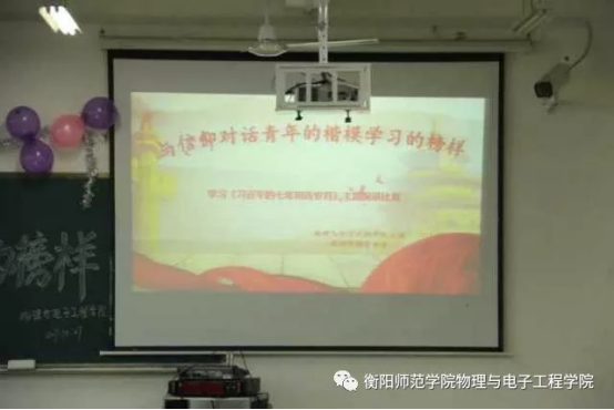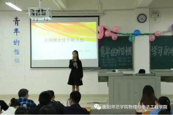 2017年10月27日晚7:00,由物理与电子工程学院主办、教师梦协会承办的以“与信仰对话,青年的楷模,学习的榜样”为主题的演讲比赛复赛在理科楼南112隆重举行。本次比赛由党支副书记张先学,辅导员李林奇、田赛男、赵鹏,团总支学生分会以及教师梦协会主要干事担任评委。