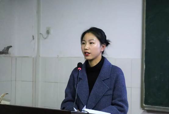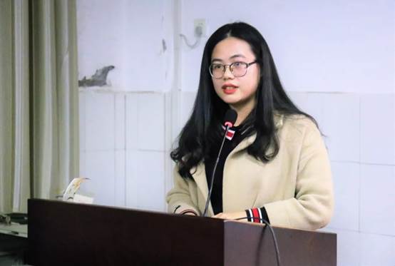 2017级汉语言文学三班团支书刘添帅从个人的思想、学习、工作和实践活动等五个方面进行了汇报。作为学生,她认真踏实,入校以来各项成绩名列前茅,并获得三好学生荣誉称号和校级二等奖学金。作为团支书,她在同学中起到了良好的带头作用,各方面表现优异,曾获“优秀共青团干部”称号,并带领班级获得“五四红旗团支部”荣誉。汇报的最后,她说:“我不一定是最优秀的那个,但我一定是最渴望成为最优秀的那一个。”