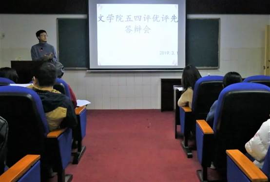 3月13日晚七点,文学院2018年度“五四评优评先答辩会”于文D603召开。