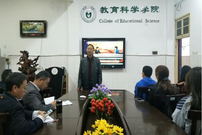 直播前,教育科学学院党总支书记陈君生发表了讲话。陈书记说:“五四运动,是一场由青年知识分子发动,广大人民群众参与的反帝反封建的伟大爱国革命运动,标志着新民主主义革命的开始,促进了马克思主义在中国的传播和中国共产主义运动的发展,为共产党领导中国革命打下了思想基础。我们今天纪念五四运动100周年,就是要学习五四精神,不忘初心,永远跟党走,紧密团结在以习近平同志为核心的党中央周围,努力奋斗,实现中华民族伟大复兴!,希望广大师生认真收看习近平总书记在纪念五四运动100周年大会上的讲话,领会其精神,积极投身到工作和学习上,为实现中国梦做出应有的贡献。”