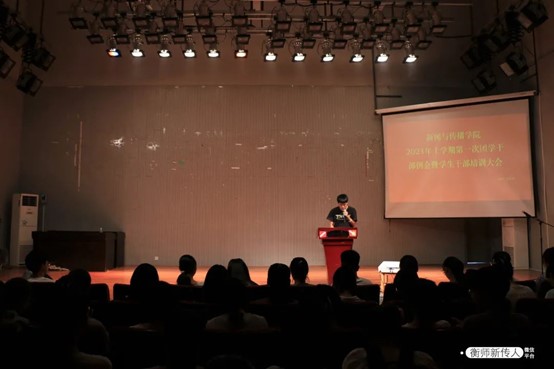 10月5日,新闻与传播学院2021年上学期第一次团学干部例会暨学生干部培训大会在演播厅举行。执行主席陈亚琴主持本次会议,辅导员欧阳素珍老师和陈琴老师、团学分会全体成员、全体学生干部出席本次大会。