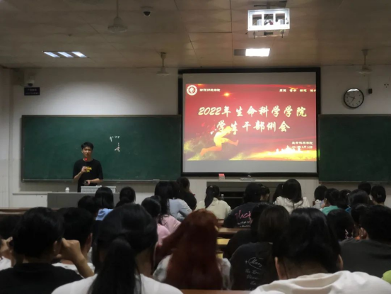 为及时总结前期我院工作进展及做出工作安排,2022年9月28日下午6:40我院于行知楼202教室召开了2022年生命科学学院学生干部例会。生命科学学院党总支副书记陈雅斐、辅导员老师唐乾翔、刘树芬、许若霏,学生会成员以及各班班长、团支书参加了本次会议。大会分为三大部分进行。