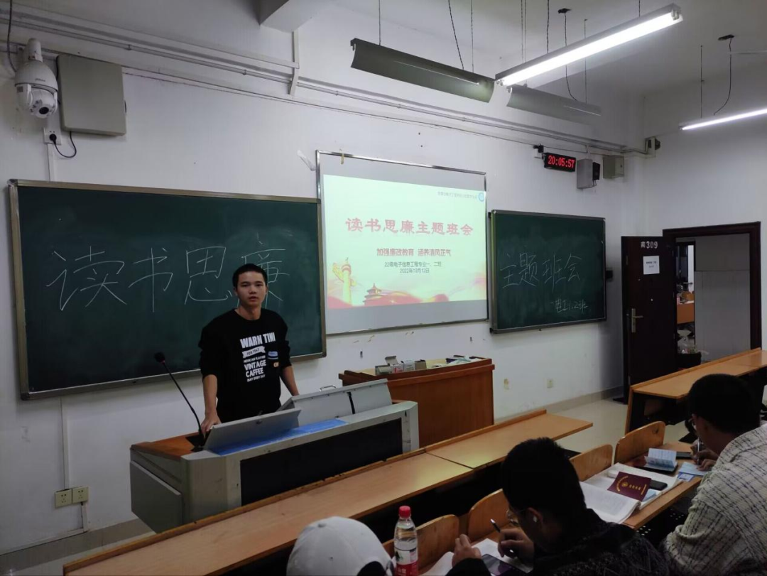 最后,各班班长及团支书分析了当前大学生诚信方面存在的突出问题,并对本次班会进行总结“身为新时代大学生,我们应当对廉政文化有所了解,以廉洁自律的标准要求自己,强化责任和服务意识”。