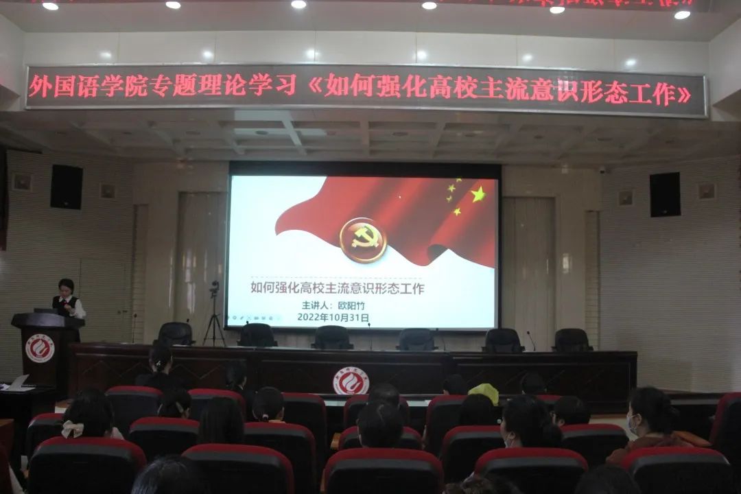 10月31日下午,外国语学院于外语楼北311会议室开展“如何强化高校主流意识形态工作”专题理论学习活动。本次学习由党总支副书记欧阳竹主讲,外国语学院全体教职工参学。