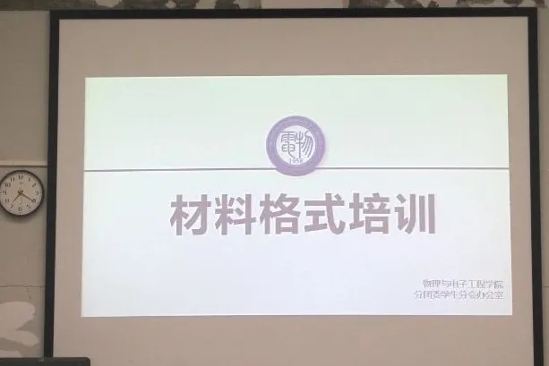 于11月18日晚物理与电子工程学院在外语楼北110教室开展了22-23年度第二次学生干部材料格式培训会。本次培训会主讲人为团学办公室主任唐楚楚,物理与电子工程学院院全体分团委学生会全体干部及22级各班班长、团支书参与。
