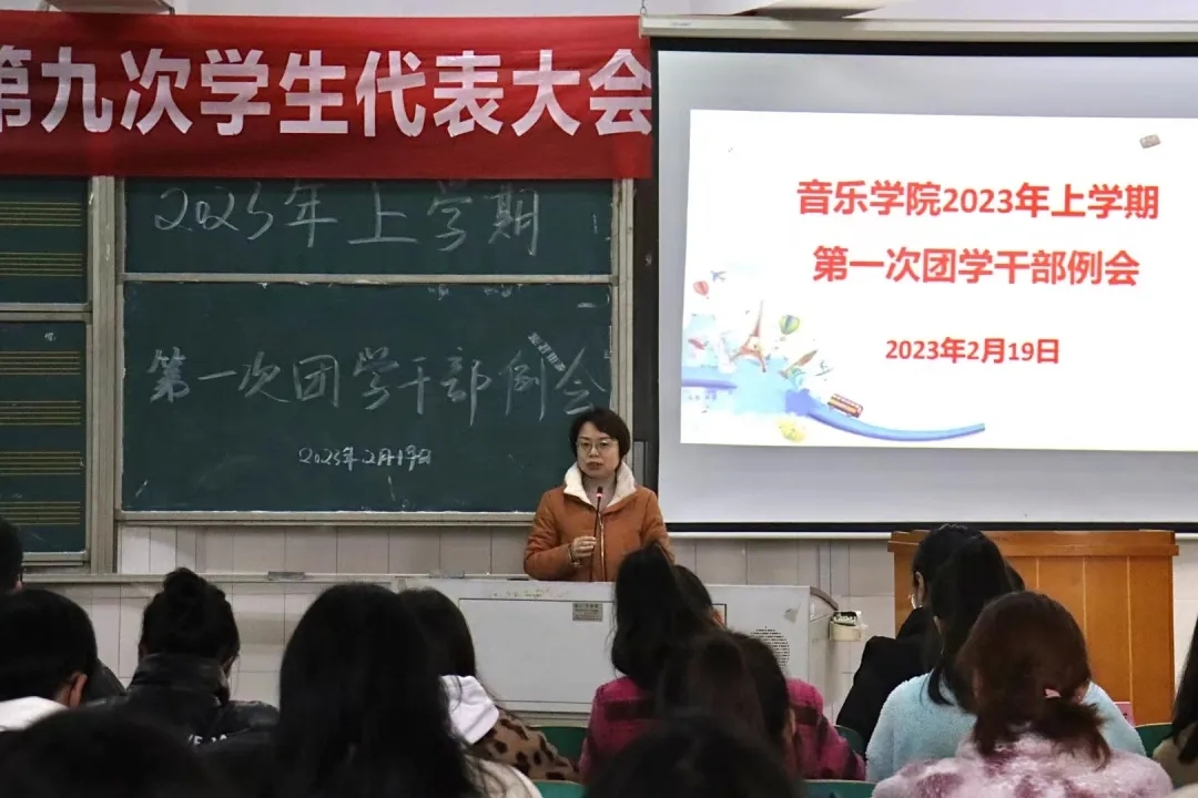 春风拂面,新学期已到来。为更好开展新学年的工作,音乐学院于2月19日在音乐楼301教室召开了本学期第一次团学干部例会。学院党总支副书记邓寒梅、学工办主任兼分团委书记吴瑶瑶、辅导员蒋思源以及分团委学生会全体学生干部、各班班长、团支书、学习委员参加了此次会议。会议由吴瑶瑶老师主持。