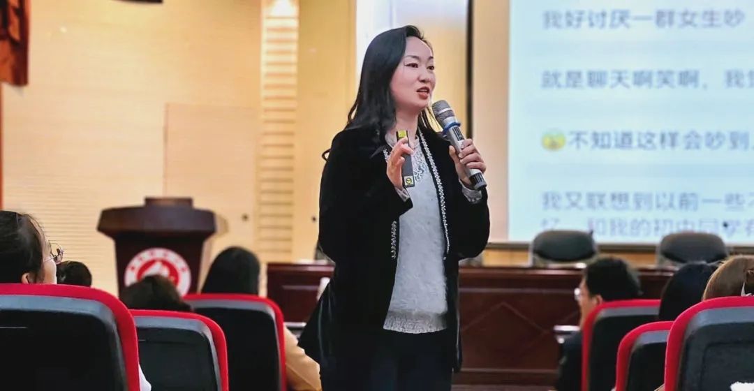 谭丽娟老师以其个人的成长故事为切入点,为学生讲述了曾经“内向、敏感、思虑过多”的她正是通过心理学这扇大门找到了改变人生的“答案”。讲座期间,谭丽娟老师通过心理活动小游戏、情景模拟活动、提问互动等方式充分提高现场师生有效参与度,在参与过程中学生们不知不觉学会心理知识,找到调节情绪办法。