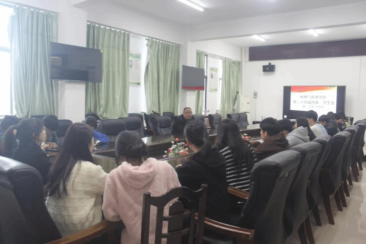 地理与旅游学院于4月24日中午在理科楼北204举行第二十四届团委、学生会第二次系干例会。出席本次会议的有学院党总支副书记文怀诚,第二十四届团委、学生会主席团和各部门中层干部。