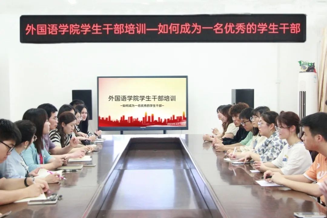 4月18日,外国语学院在外语楼南213会议室召开学生干部培训会。学院党总支书记贺琴琴担任主讲人,学工办主任邱国周,辅导员陈琴、龚晨阳、刘志伟出席会议,2022级分团委学生会主席团、各部门部长和副部长参与会议。