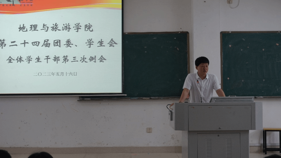 地理与旅游学院于5月16日中午在理科楼南112举行地理与旅游学院第二十四届团委、学生会全体学生干部第三次会议。地理与旅游学院学工办主任兼团委书记阳宏润老师和辅导员陈旭老师出席本次会议,第二十四届团委、学生会全体学生干部参与此次例会。