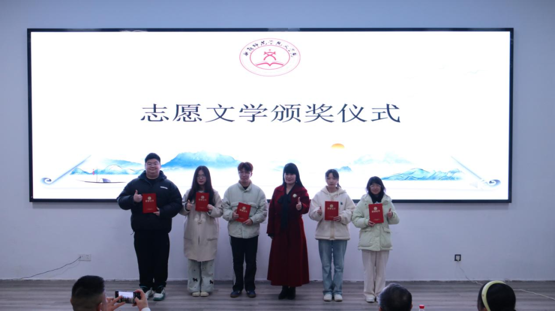 活动现场,领导嘉宾依次为志愿文学一、二、三等奖获得者颁奖。文学院2025级汉语言文学2班李研同学表示,原本只是来领个证书,没想到之前写到作文里的老师却如此真切的站在面前,分享一个个感人的志愿故事。这让她不禁思考怎样发挥专业所长把志愿服务做细做实。